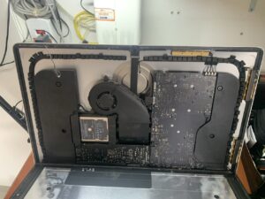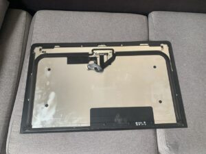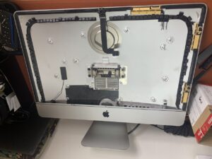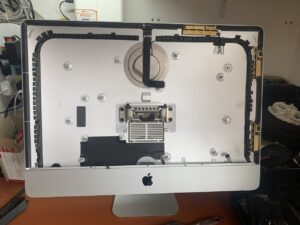 iMac với thiết kế màn hình gắn liền, rất mỏng có lớp băng keo chuyên dụng giữa màn hình và máy nên việc thay thế với người dùng không có kinh nghiệm là một điều rất khó, bạn không nên thử tự làm vì rất có thể sẽ gây nên hỏng hóc và bể mặt kính màn hình.